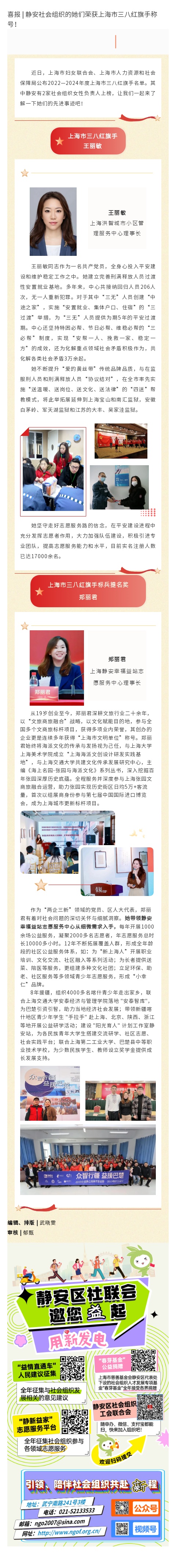 喜报 | 静安社会组织的她们荣获上海市三八红旗手称号!