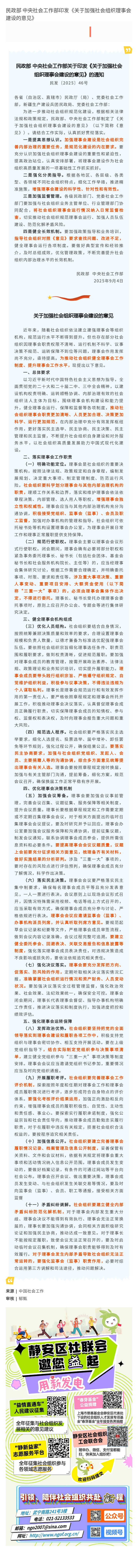民政部 中央社会工作部印发《关于加强社会组织理事会建设的意见》