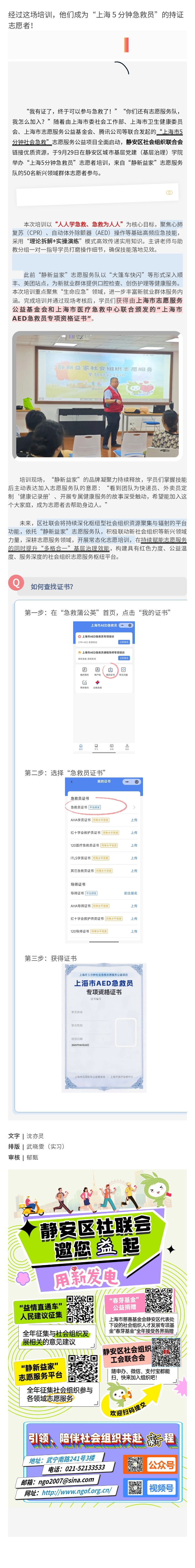 经过这场培训,他们成为“上海 5 分钟急救员”的持证志愿者!
