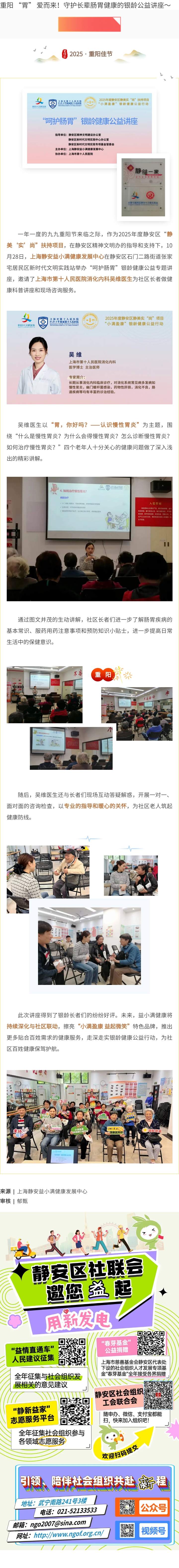 重阳 “胃” 爱而来!守护长辈肠胃健康的银龄公益讲座~