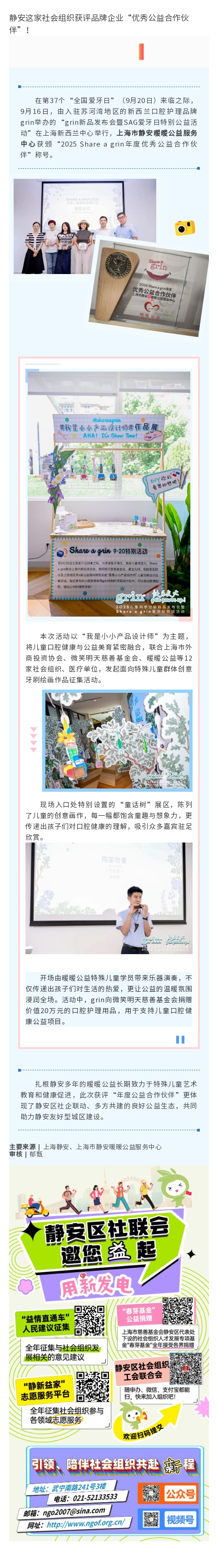 静安这家社会组织获评品牌企业“优秀公益合作伙伴”!
