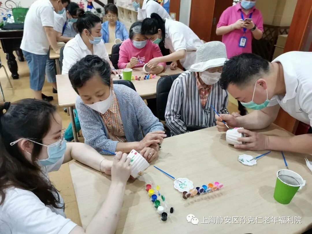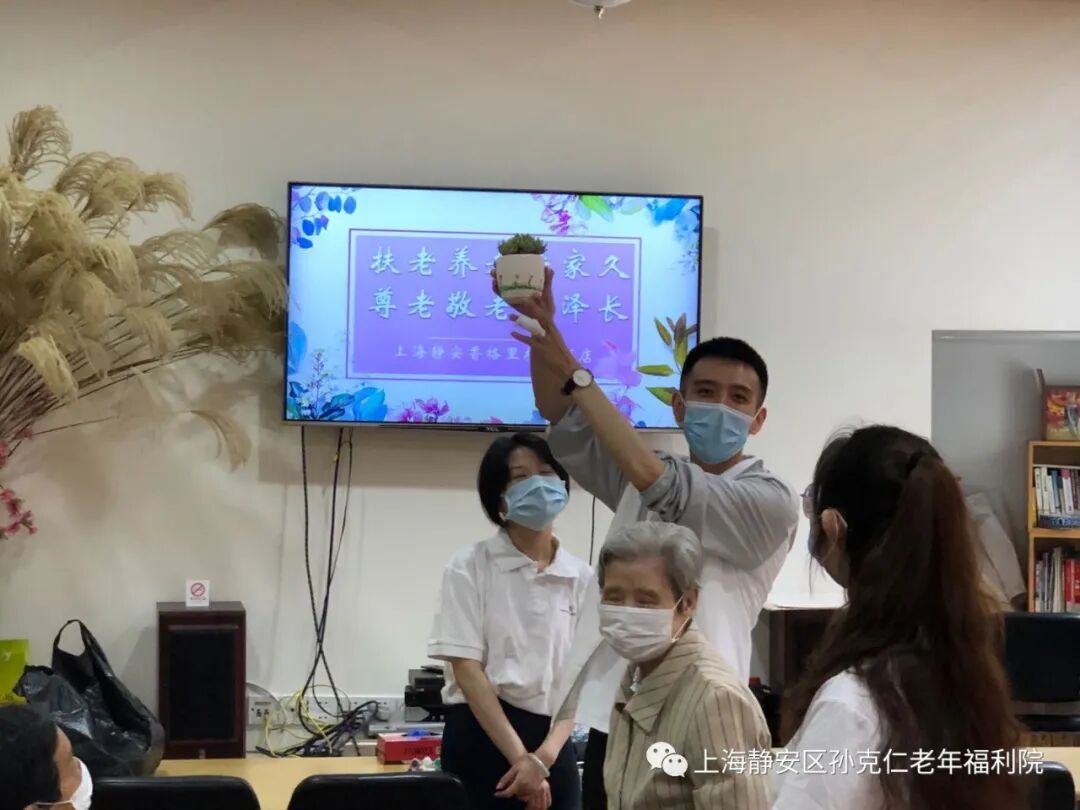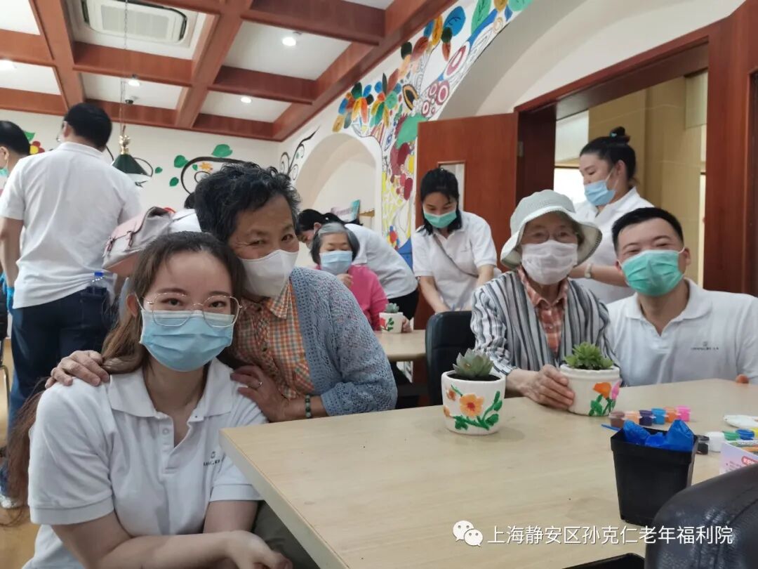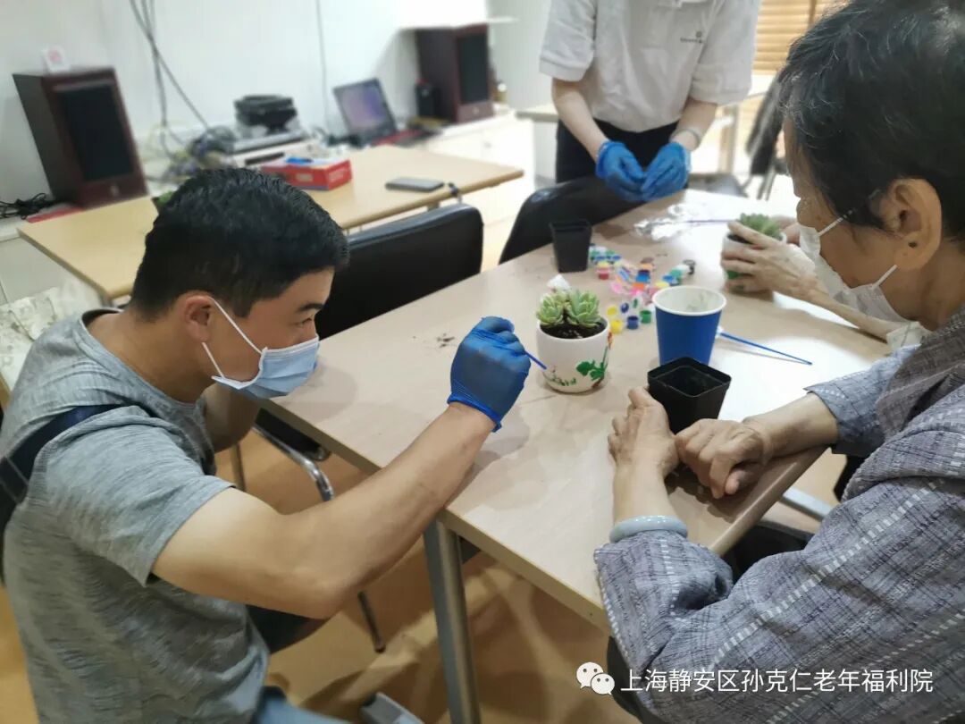 香格里拉大酒店的志愿者们在经过了严格的测温、消毒、登记后进入了院内。经过简单介绍和老宝贝们热烈的欢迎后,活动也正式开始。志愿者们协助老宝贝们一起画花盆,种多肉。