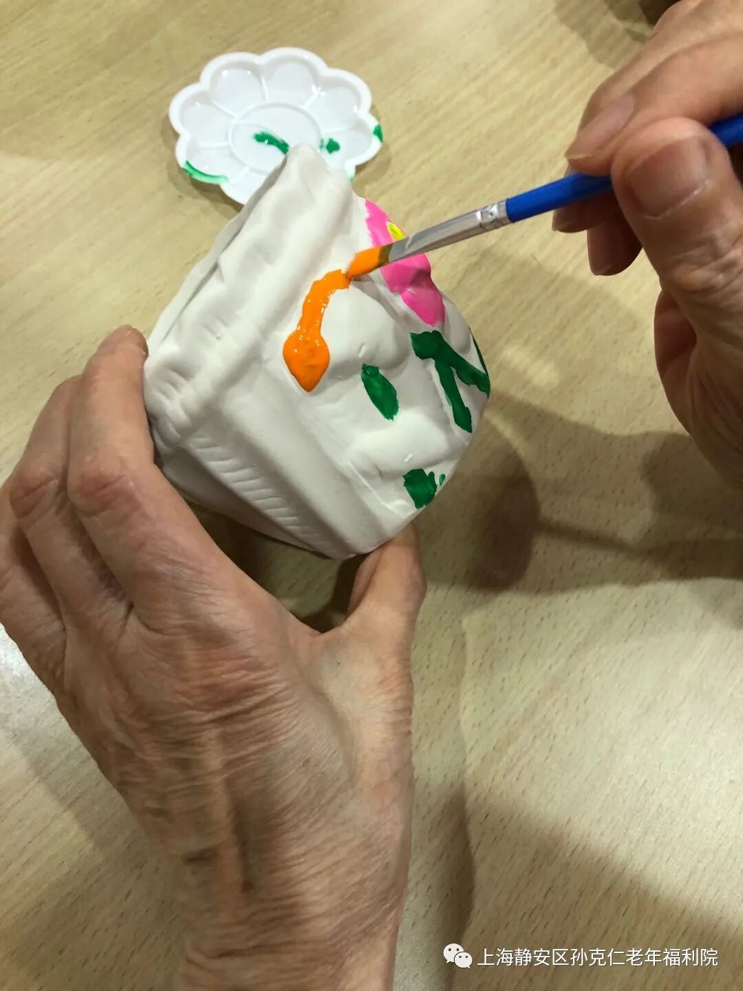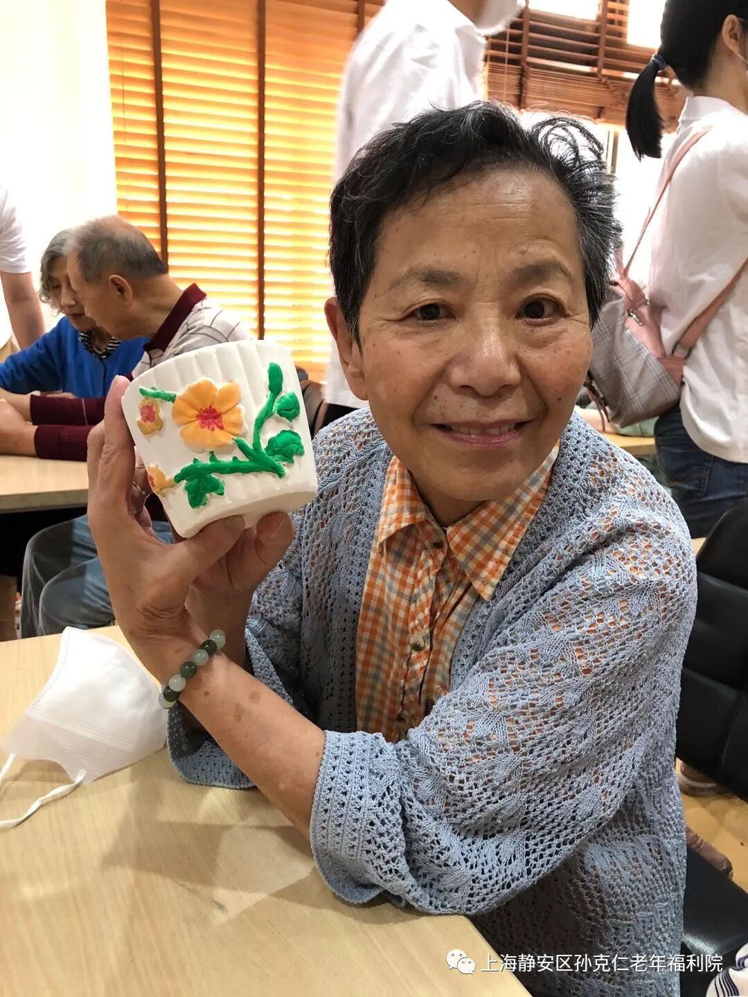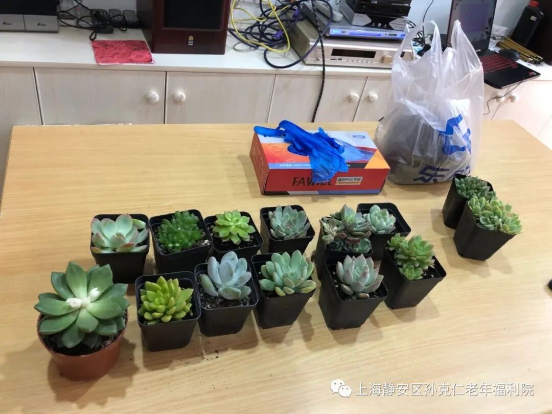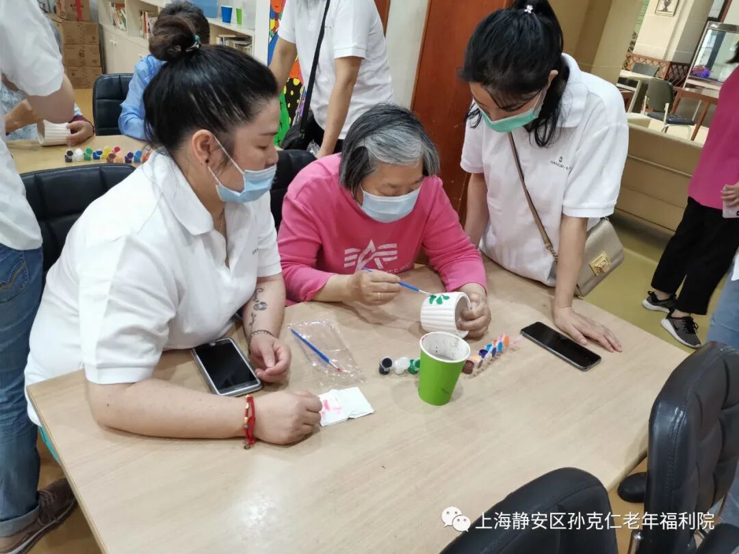 香格里拉大酒店的志愿者们在经过了严格的测温、消毒、登记后进入了院内。经过简单介绍和老宝贝们热烈的欢迎后,活动也正式开始。志愿者们协助老宝贝们一起画花盆,种多肉。